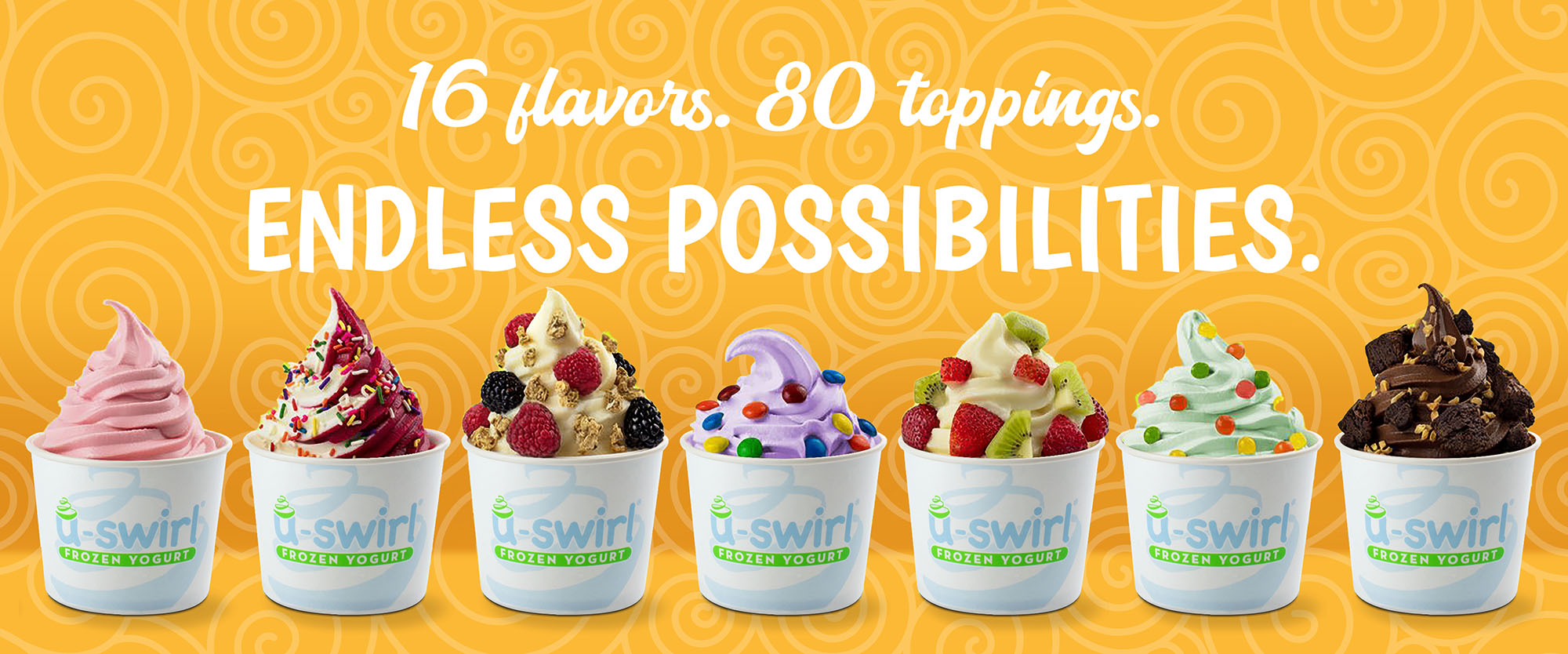 Choose from 16 delicious frozen yogurt and sorbet options with new, exciting flavors swirling every month.